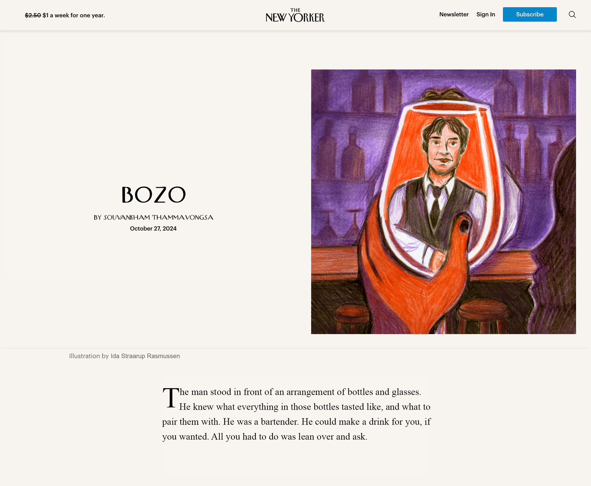 This is a fictional project. Illustration to accompany "Bozo" a short story by Souvankham Thammavongsa for The New Yorker.
