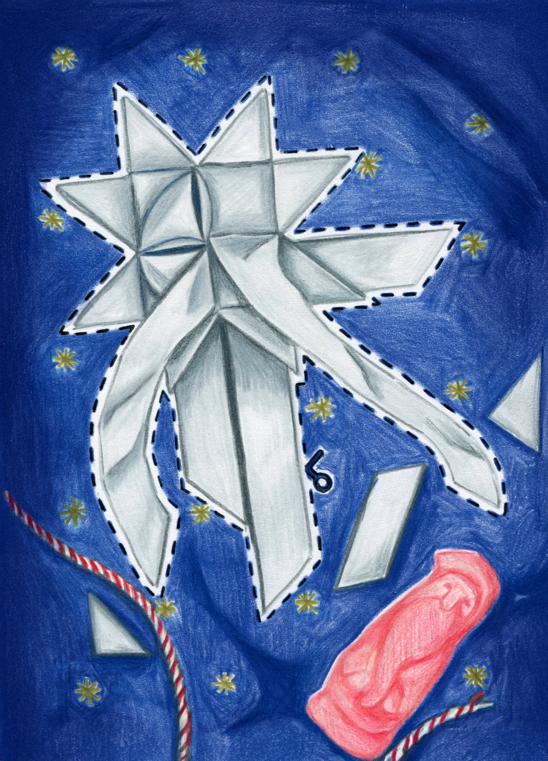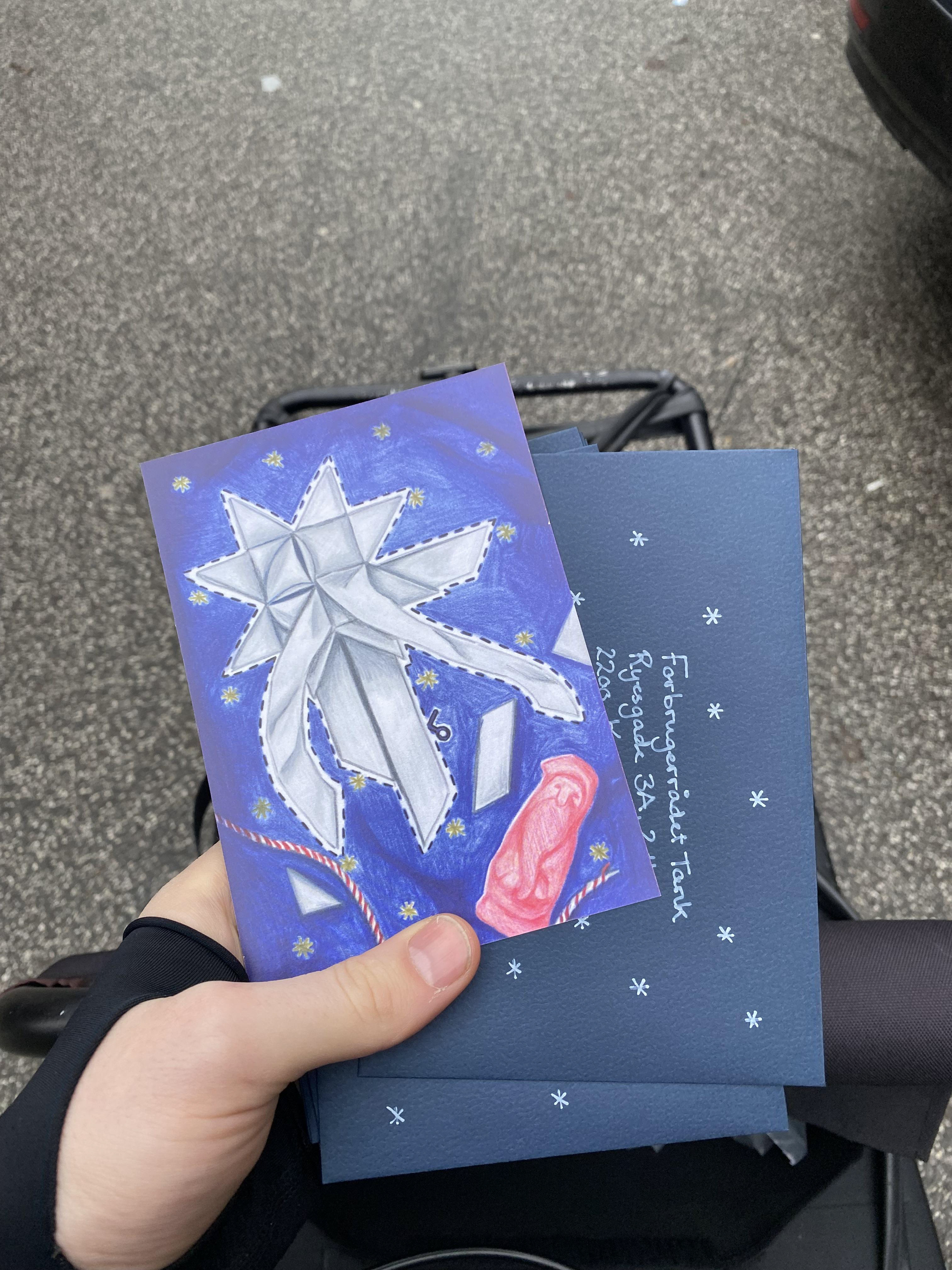 This years Christmas card. Featuring a half-done Christmas star, in case you didn't have time to make your own. You can cut it out and put it on your tree if you like. Don't worry it will still have my contact info.
