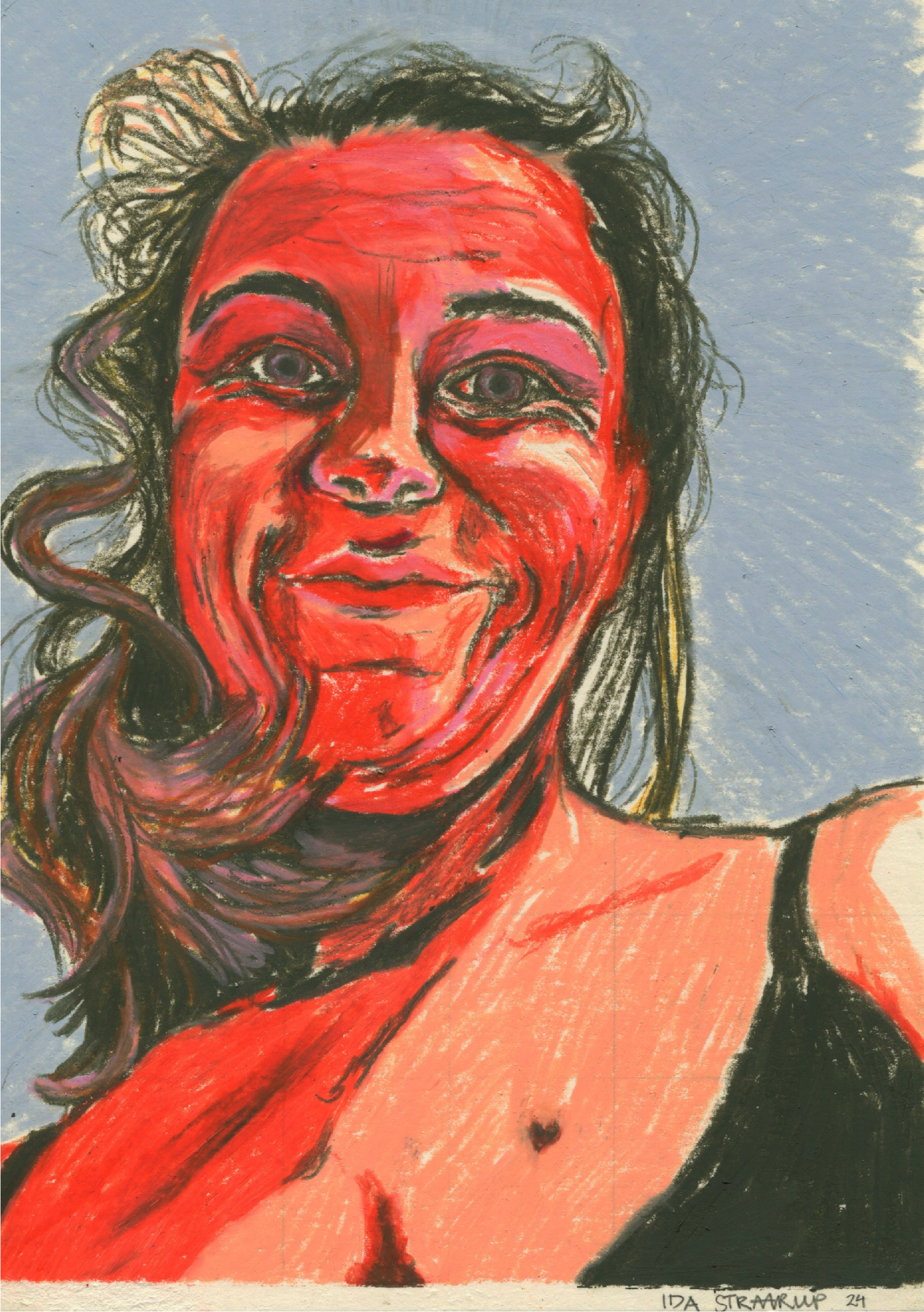 Self portrait done with wax pastels.