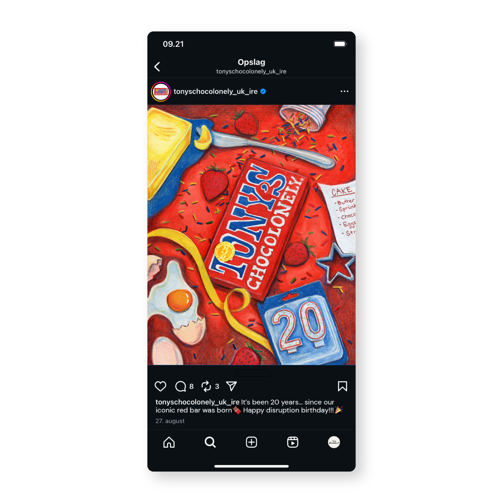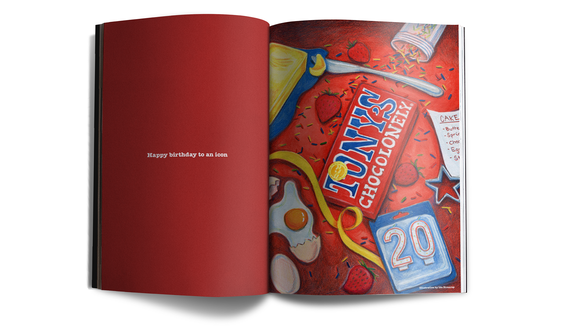 This is a fictional project creating a campaign for Tony's Chocolonely. The campaign celebrates the 20 year birthday of their first iconic red chocolate bar.